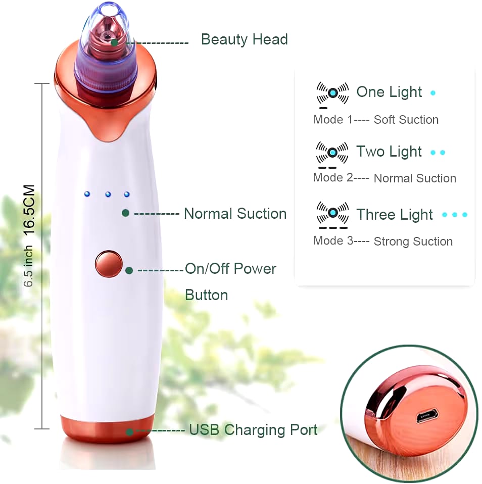 Say goodbye to stubborn blackheads and clogged pores with the Electric Blackhead Remover Kit — your at-home skincare solution for clearer, smoother skin. Designed with advanced vacuum suction technology and 5 interchangeable probes, this device deeply cleanses pores, removes blackheads, whiteheads, excess oil, and acne with precision and care.